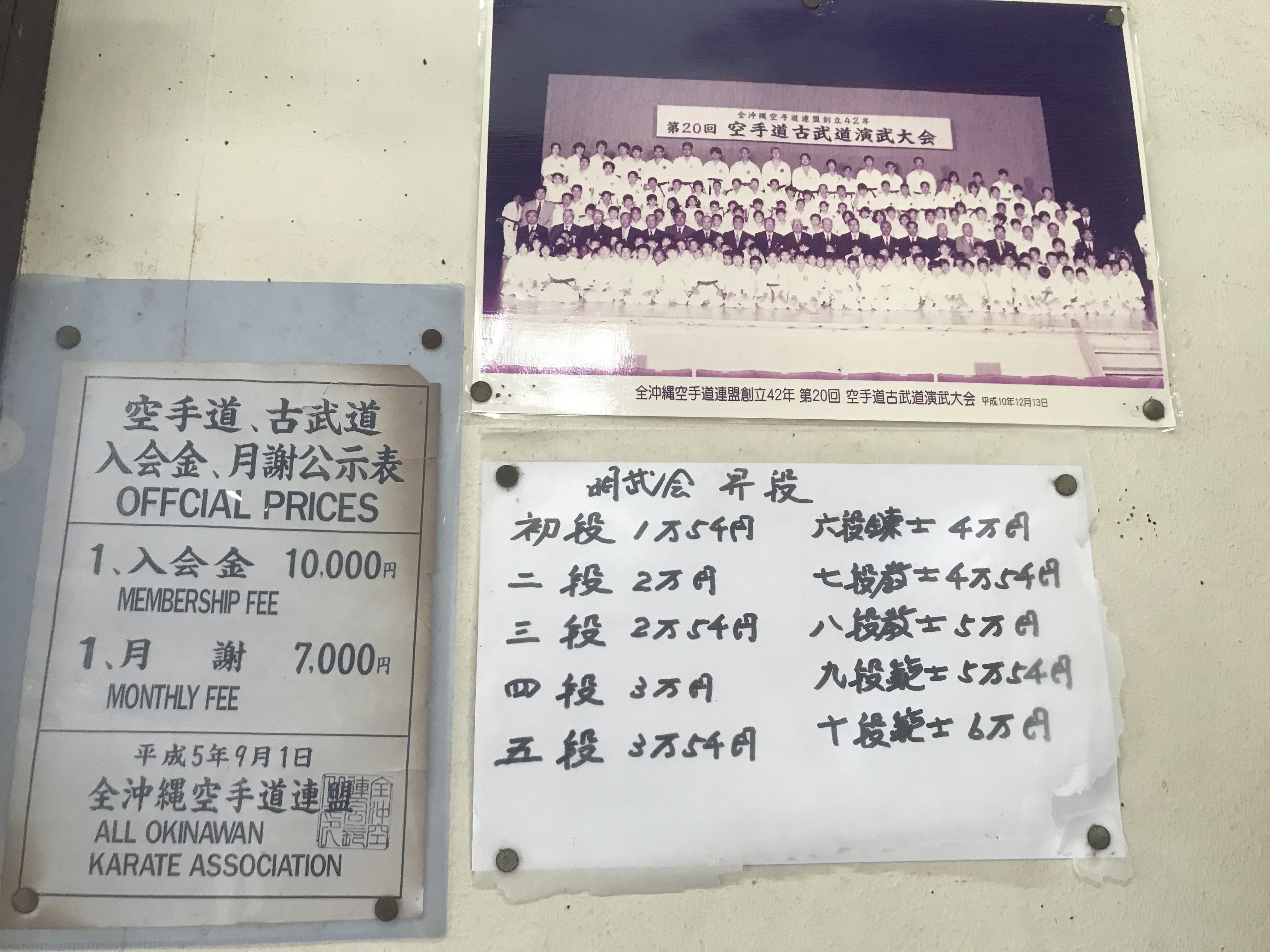 Das Training beginnt. Weil ich Shotokan betreibe, nicht Goju-Ryu wie Hokama es lehrt, will ich die Etikette wahren, indem ich einen weißen Gurt anlege. Aber der Meister fragt in gebrochenem Englisch:
