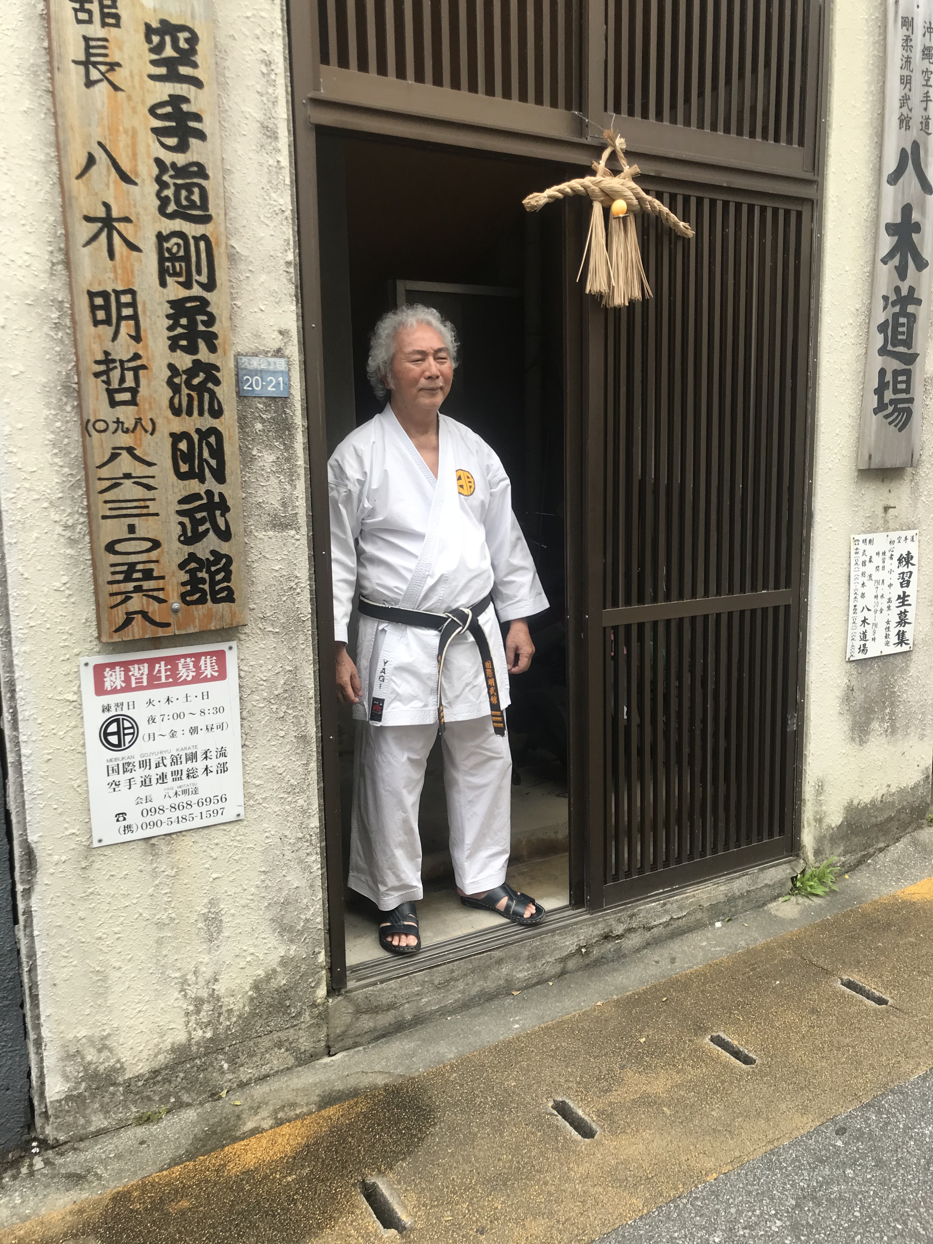 Alles begann mit einen Autounfall, der mich über Tokio in dieses Dojo am nördlichen Rand der Stadt Naha in Okinawa geführt hat, in dem ich nun einem Mann namens Tetsuhiro Hokoma, 76, gegenüberstehe und er mir meinen Trainingspartner vorstellt: „Das ist Dejan. Er sieht aus wie ein Killer, oder? Er wird dich töten. Bist du bereit?“