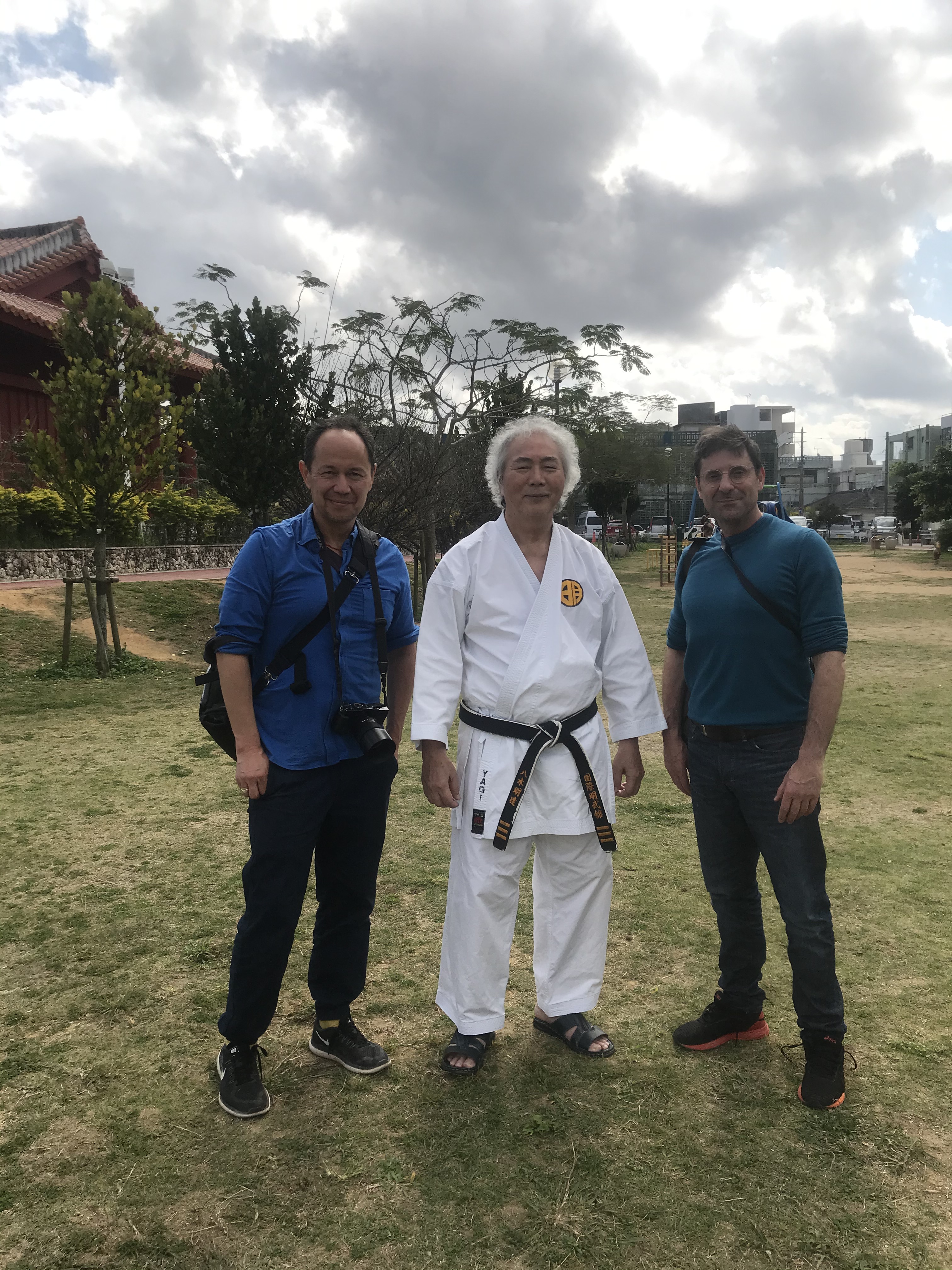 Yagi war fünf Jahre alt, als er von seinem Vater ans Karate herangeführt wurde. Meitoku Yagi (1912 – 2003) war Schüler eines Mannes namens Chōjun Miyagi (1888 – 1953). Er ist Begründer des Goju-Ryu-Karate, das Yagi wie auch Hokama lehren. Miyagi war ein strenger Lehrer, er nahm nicht jeden bei sich auf: Schüler, die pfeifend zum Training kamen oder sich ein Handtuch um den Hals warfen, bevor sie das Dojo betraten, setzte er kurzerhand raus. Die wenigen Schüler, die übrigblieben, ließ Miyagi im Garten ein Jahr lang Steine umsetzen und Bäume entwurzeln. Nur wer übrigblieb, durfte eine einzige Kata laufen, eine Formabfolge, in der die von Meistern über Generationen hinweg übertragenen Karatetechniken verschlüsselt sind. Im Goju-ryu-Karate gibt es zwölf Kata. Um alle Anwendungen einer einzigen Kata zu entschlüsseln, benötige man zwar drei Jahre, sagt man auf Okinawa. Doch wer alle Anwendungen beherrscht, kämpft mit der Kraft mehrerer Hände und Füße.